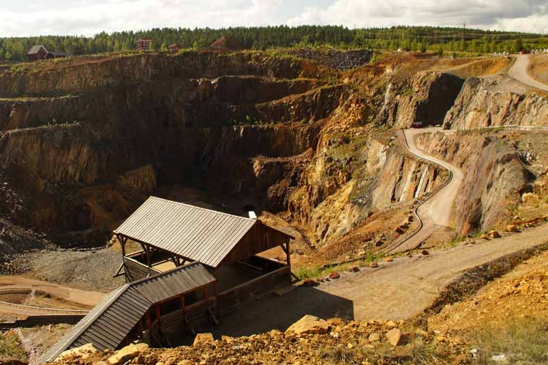 Und diese Kupferfarbe treffe ich allerorts an den Häusern der Region wieder, die traditionell in diesem Farbton gehalten sind. Der Grund liegt in Falun. Die Kupferminen-Stadt mit der "Falun-Gruva", heute ein Museum aber bis 1992 ein aktives Bergwerk. Das sehe ich mir an. Denn der Kupfer-Abbau in der Region Dalarna hat nicht nur Tradition, er ist kennzeichnet die Region markant durch seinen Farbton. Kein Wunder also, dass die Farbenfabrik neben der Kupfermine noch arbeitet und Lacke produziert.