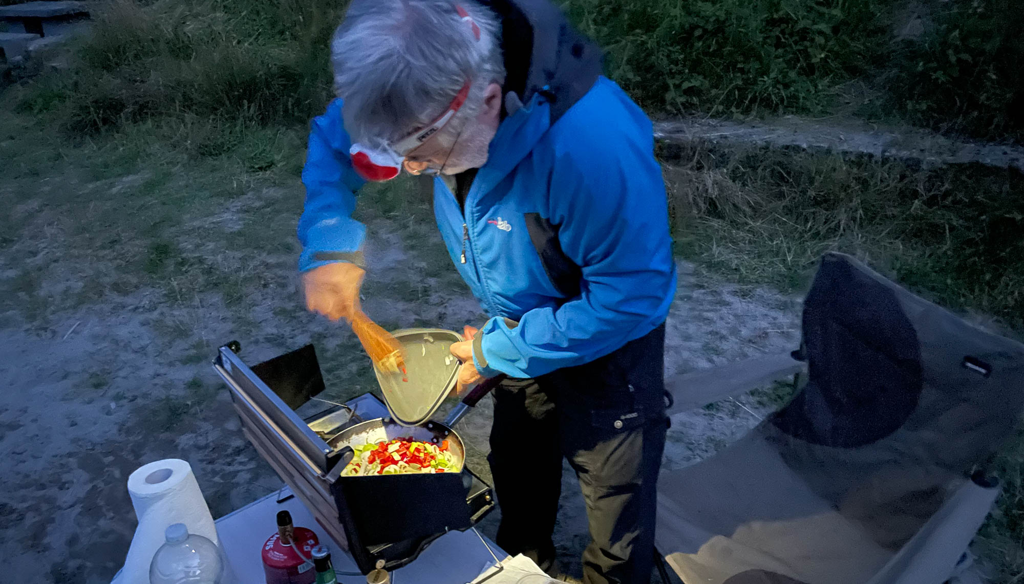 Es wird Zeit für ein irisches Bier und unsere Spezialität: Reispfanne ohne Reis, diesmal mit Lauch, Paprika und ortsansässigen Kartoffeln.
